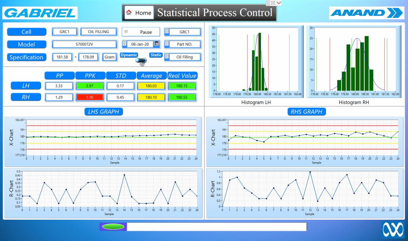 - The home screen is a rotating display which reads Oil filling and Torquing data from machine and plots the graphs according to the specifications.